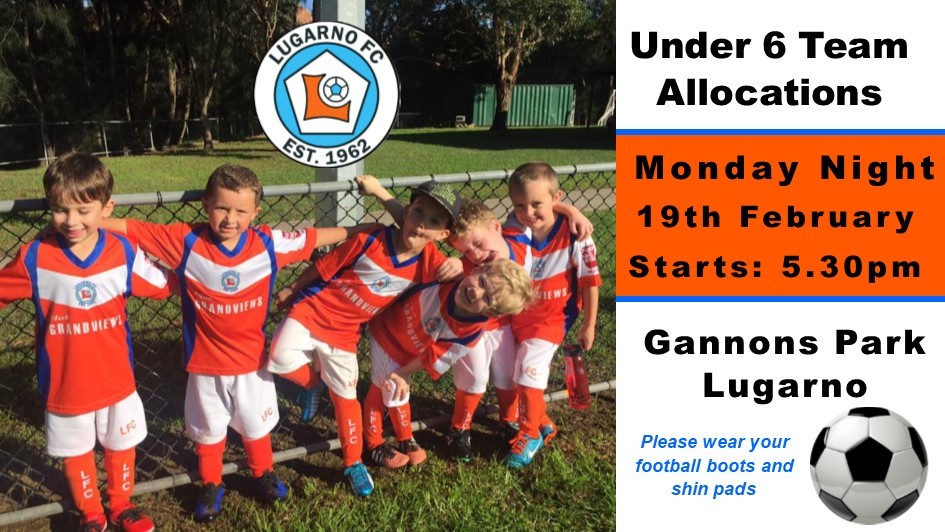 Lugarno FC U6 team allocations are this Monday, 19th February.