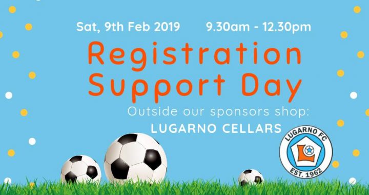 Lugarno FC registration support day is on this Saturday, 9th February from 9.30am to 12.30pm at the Lugarno Village Shops. We’ll be setting up near our loyal sponsors Lugarno Cellars, Lugarno Deli Café and Lugarno Pharmacy.